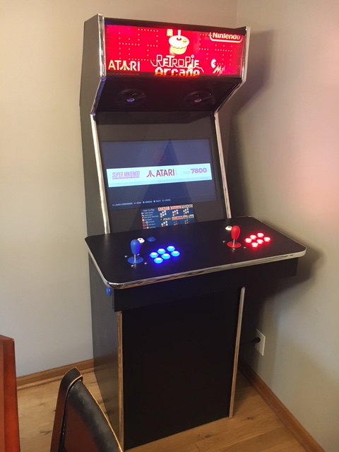 "Attached photos are from my arcade build. I found your site extremely helpful in guiding me through the build process. I’ve never built anything out of wood before so I was definitely a beginner. I made the cabinet slimmer and wider to accommodate a 24” flatscreen. It’s using a raspberry pi to run Retropie and an Arduino Uno to control the marquee leds. Again thanks for the great information. I wouldn’t have been able to build my arcade without it.